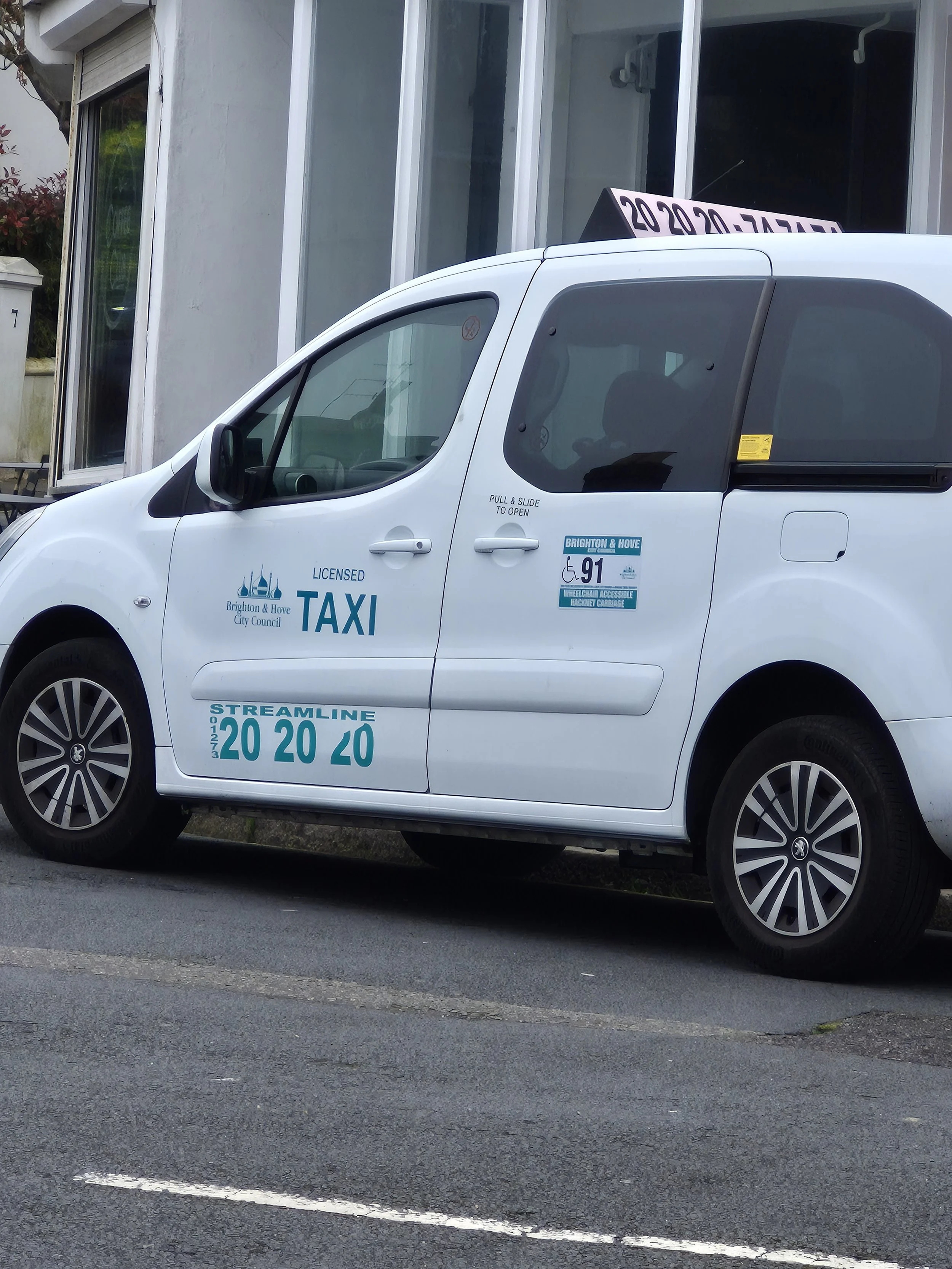 Hackney Carriages - Our iconic aqua and white taxis of Brighton & Hove, easy to spot and ready for immediate hire.